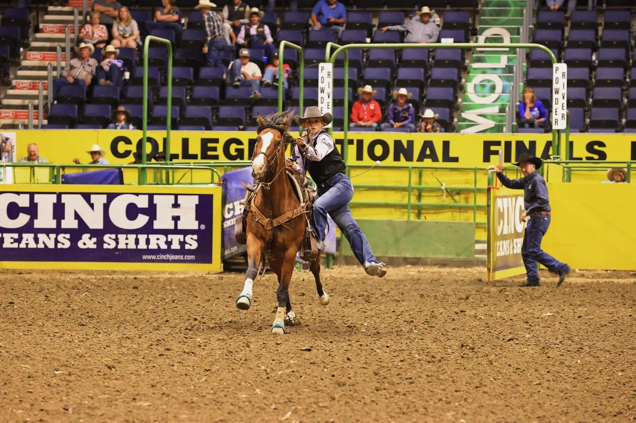 One of the most defining partnerships of Aubree’s rodeo career began with Murphy, a horse originally purchased by Randy and trained by Aubree in just a few months. Together, they quickly became a dominant team, earning regional college titles, trophy saddles, and a trip to the College National Finals. “I won almost every single rodeo on this horse,” Aubree says. “We were unbeatable.”