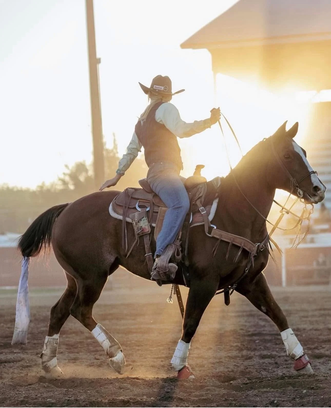 Aubree calls herself a first-generation cowgirl. She grew up riding horses, a love first fostered by her mother through time spent riding for fun and connection, and was actively involved in rodeo from junior high on—drawn mostly to the adrenaline.